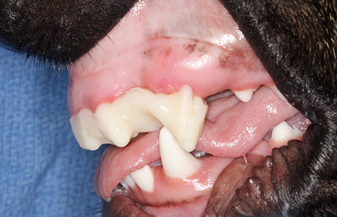 The answer is: to make a pet’s mouth healthier and less painful. This is a key difference from human orthodontics—we are not aiming for the perfect smile; we are aiming for the most comfortable smile!